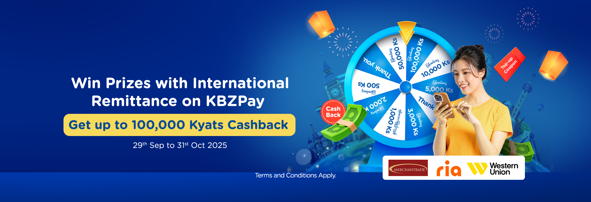 In the festive Thadingyut holiday season, we are happy to share with you the good news that KBZPay can now accept money transfers from overseas to loved ones in Myanmar more conveniently and hassle free. In addition, you can have a chance to win the prizes when you receive the overseas transfers through KBZPay.