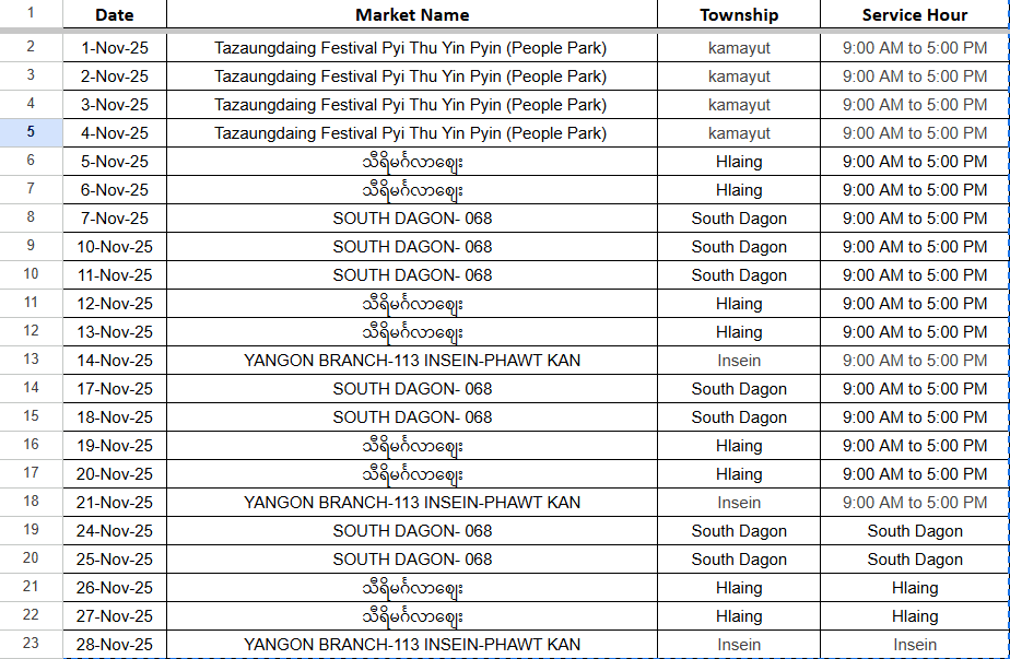 5-Nov-25 သီရိမင်္ဂလာစျေး Hlaing 9:00 AM to 5:00 PM